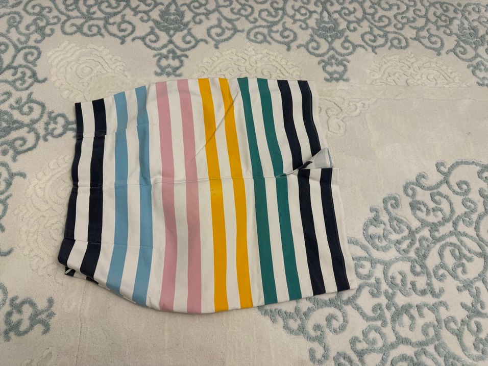 Mini etek , pastel tonlarda çok renkli çizgili desenlere sahiptir. Yumuşak sentetik kumaştır