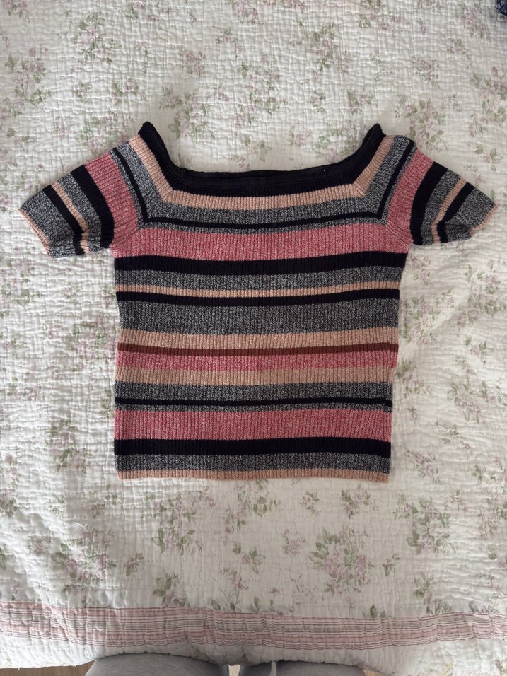 kısa kollu, ince triko kumaştan yapılmış, çizgili, crop boy kadın bluz. Rahat ve şık sokak stili için uygun.