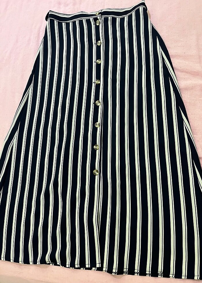 Çizgili düğmeli etek kemerı mevcut