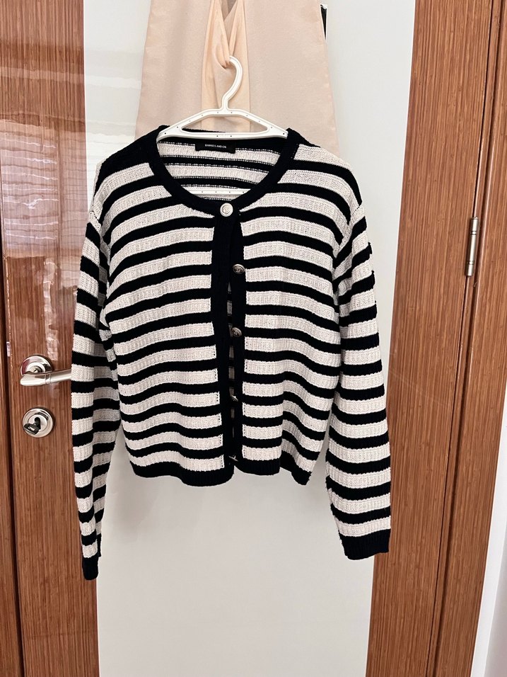 Fitted kesim, düğmeli, çizgili örme kadın hırka. Yuvarlak yaka ve askılı kollara sahip, normal midi boy. Günlük kullanıma uygun, Barrels and Oil markası. Standart beden 2-3 kere kullanıldı s-m bedene çok rahat olur L beden de olur zaten standart ve az salaş gibi iade yok pazarlık var hızlı kargo