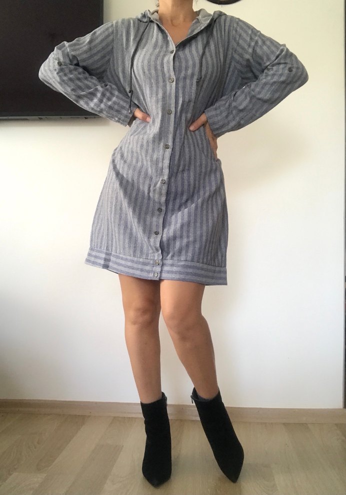Sıfır ürün Kapüşonlu Esneklik yok mu denecek kadar az Uzun süre depoda beklediği yıkanması gerek Ölçü baz alınız
