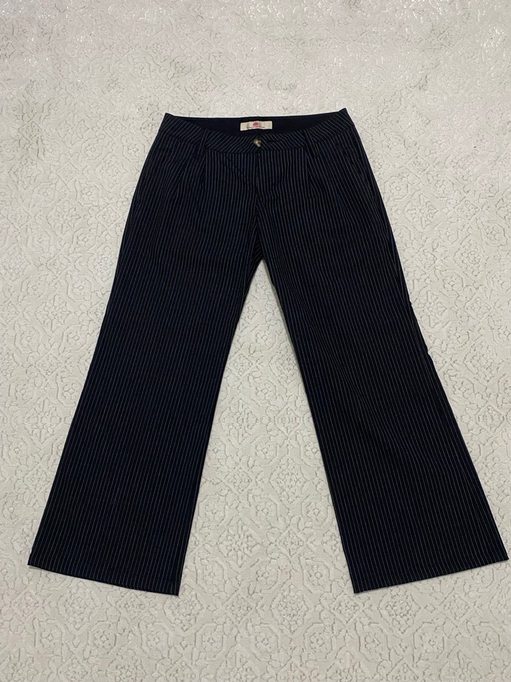 Cizgili düşük bel kumas pantolon