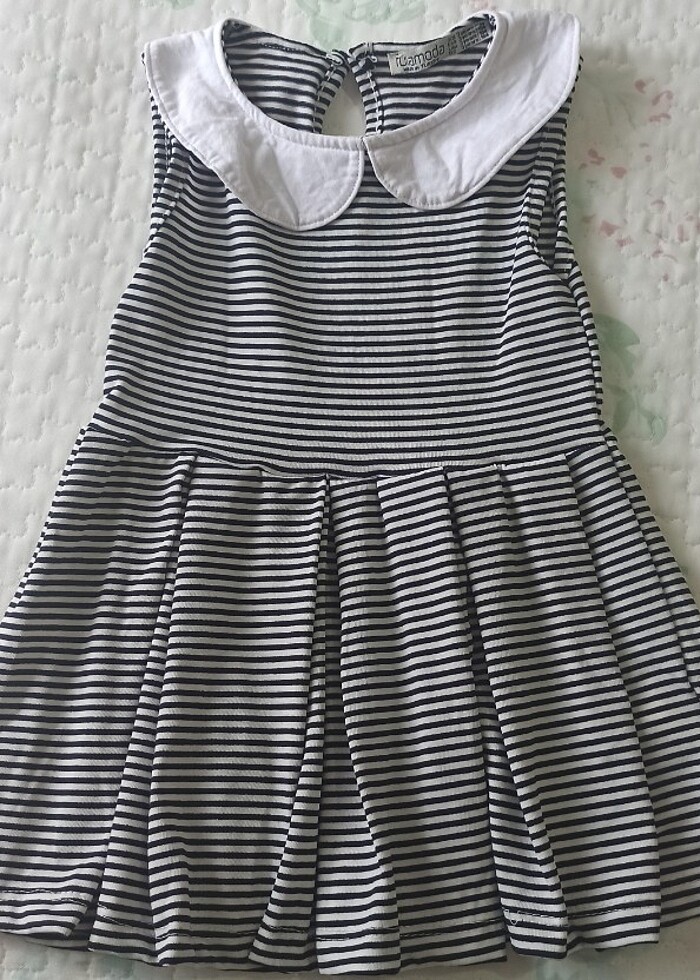 İki kez giyildi. Yeniden farksız. 18-24 ay için uygundur. Siyah beyaz çizdiği bir elbise