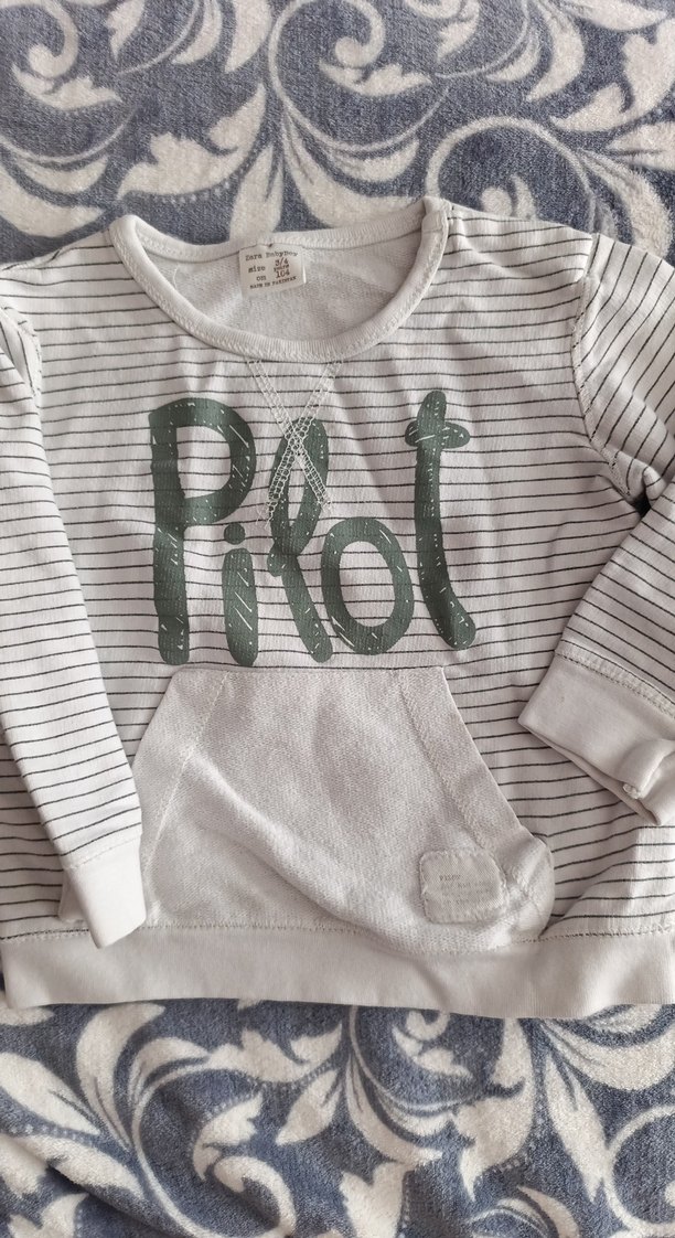 Erkek çocuk sweatshirt, uzun kollu ve yuvarlak yakalıdır. Örme dokusu ve önünde 'Pilot' baskısı vardır. Gri tonlarda, yumuşak ve sıcak kumaştan üretilmiştir. ✈️