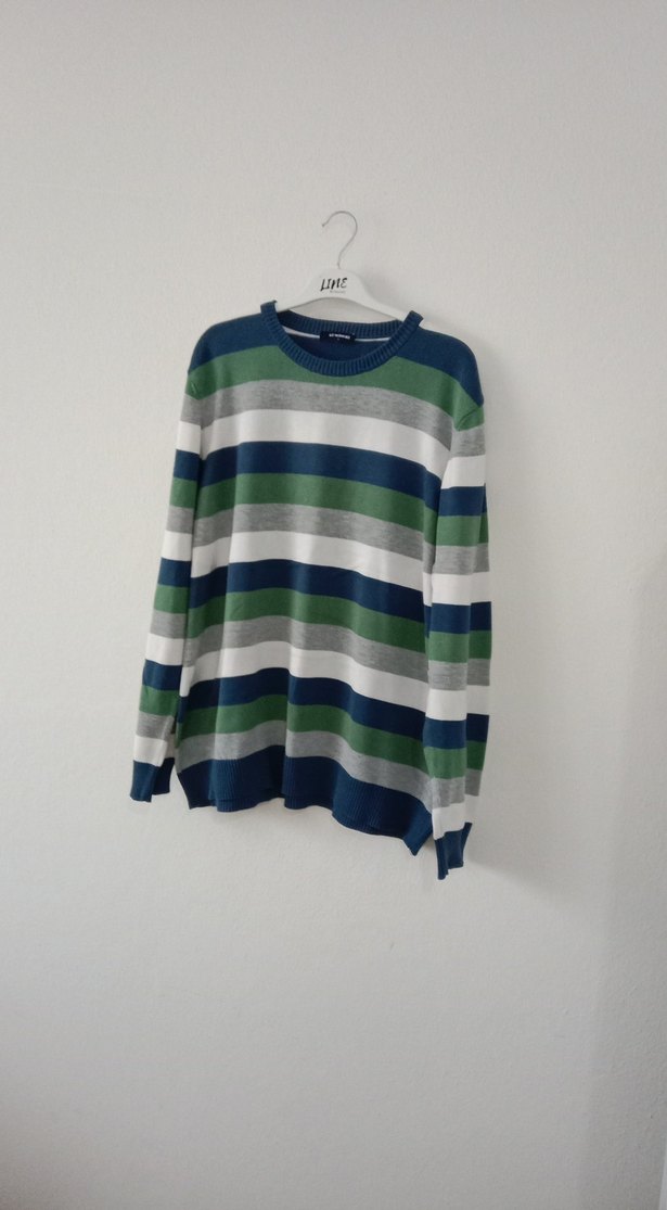 Erkek çocuk için uzun kollu, yuvarlak yakalı ve bol kesim çizgili triko kazak. Yumuşak örme kumaştan, rahat sokak stili için ideal. l beden boy uzunluğu 66 eni....61