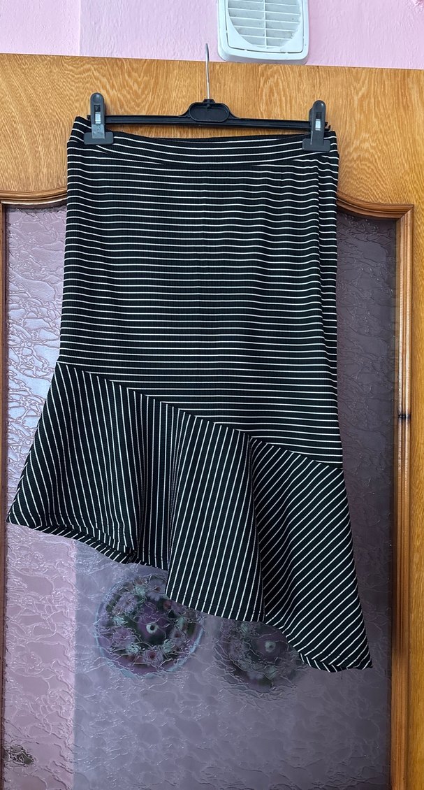 Siyah beyaz çizgili, asimetrik etek. Hiç giyilmedi.