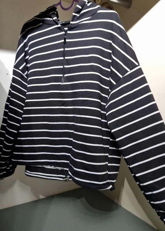 çizgili fermuarlı kapüşonlu sweatshirt