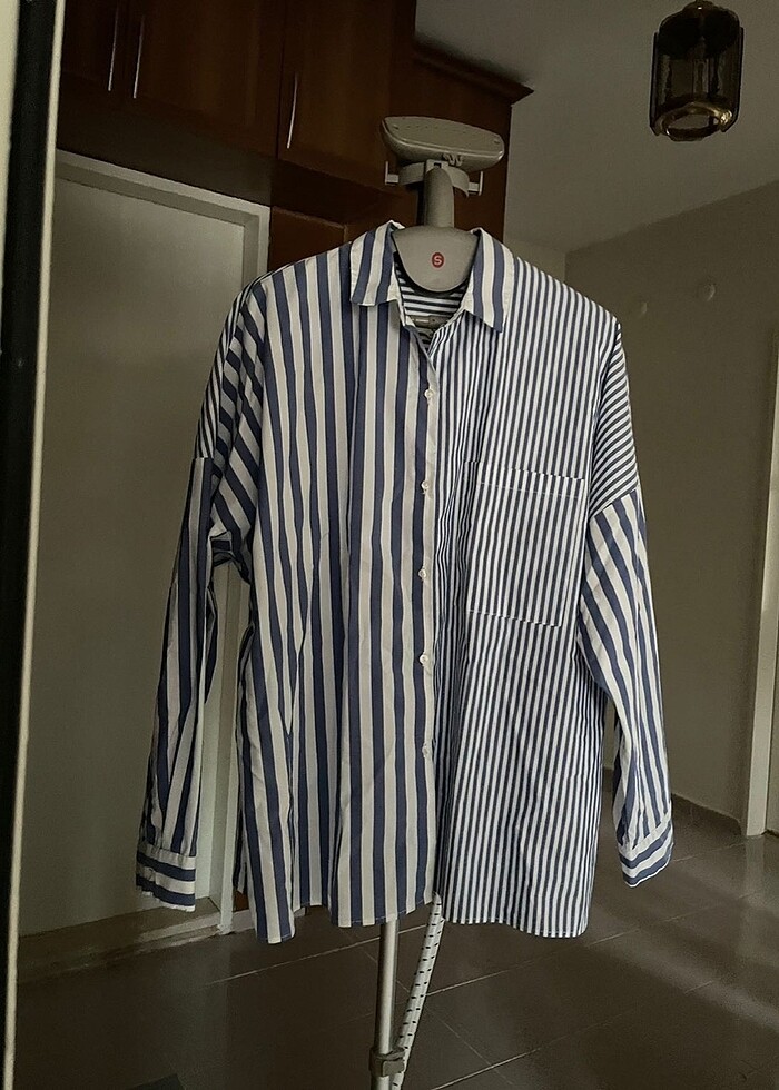 Kullanılmamış temiz sorunsuz. Olasılıkla ürünün iç etiketi kesilmiş. Kalıp gibi duran çizgili gömlek. Beden M yazıyor ama L ye yakın bir M olduğunu düşünüyorum o yüzden bedeni L seçtim.