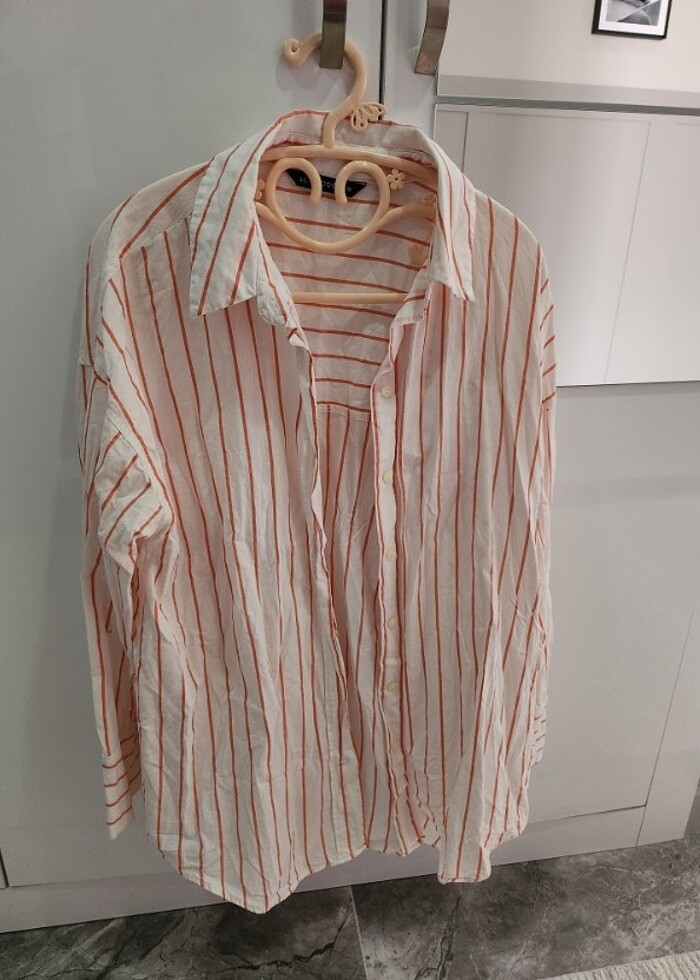 Turuncu çizgili gömlek 4, 5 kereden fazla giyilmedi kusuru veya defosu yok
