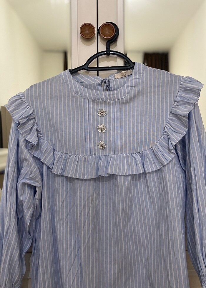 Mavili beyazlı çizgili gömlek yaka detayı çiçekli 38 beden yeni ürün