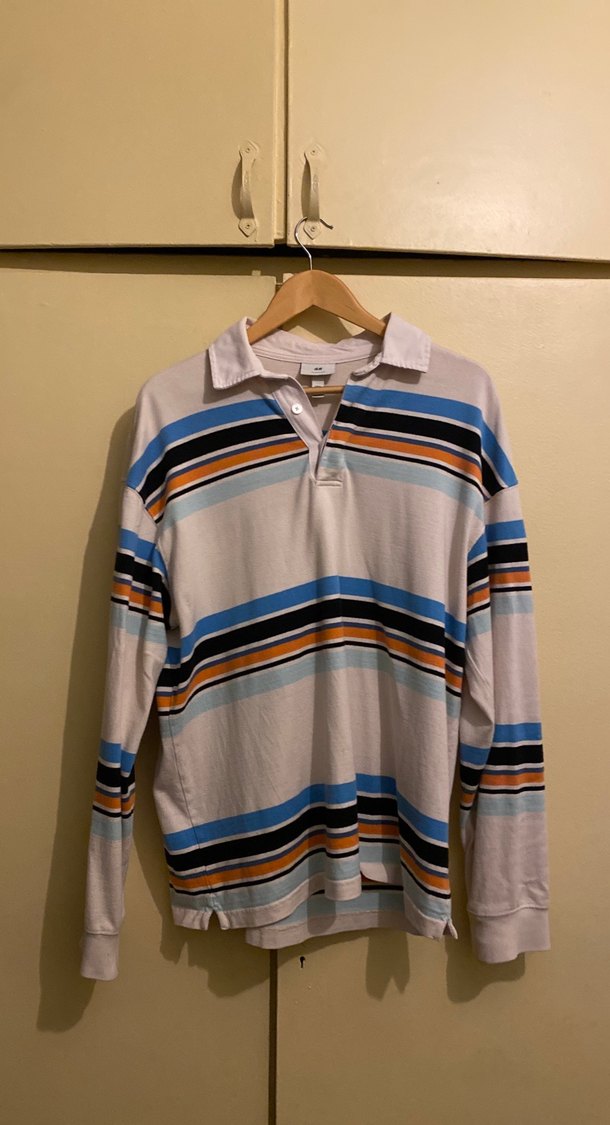 Pamuklu kumaştan, rahat kesimli, çok renkli çizgili uzun kollu. Çok iyi durumda