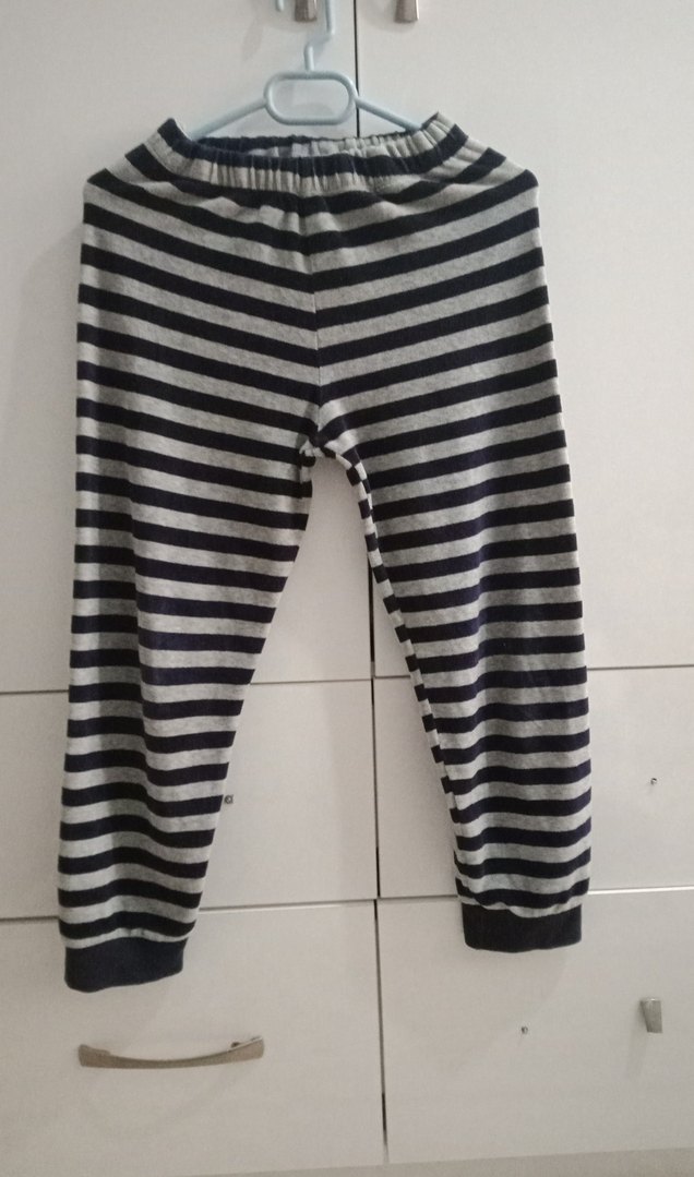 Gri ve siyah çizgili, esnek beliyle rahat oturan erkek çocuk eşofman altı. Yumuşak sentetik kumaştan, sokak stiline uygun.8/9yas