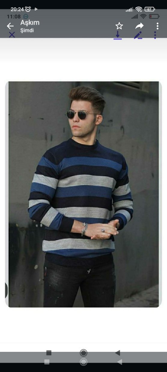 Bu erkek kazağı, yuvarlak yaka ve uzun kollu olup, normal kesimdedir. Gri ve lacivert tonlarında çizgili örgü deseniyle günlük kullanım için uygundur.