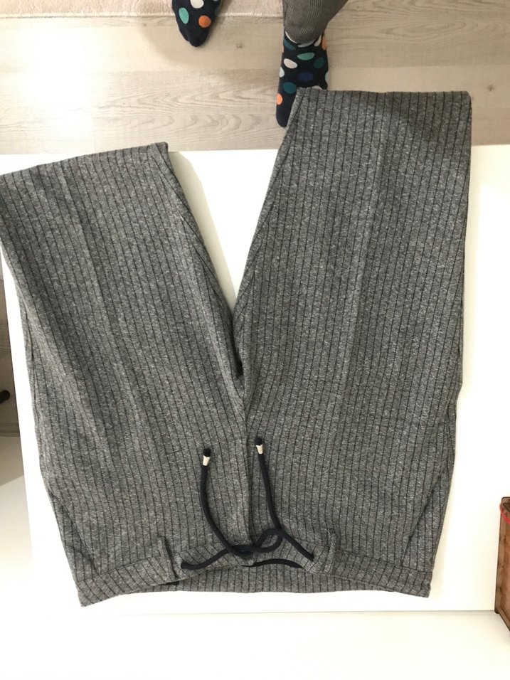 Esnek yapılı çizgili jogger pantolon görüldüğü gibi temiz ve az kullanıldı.