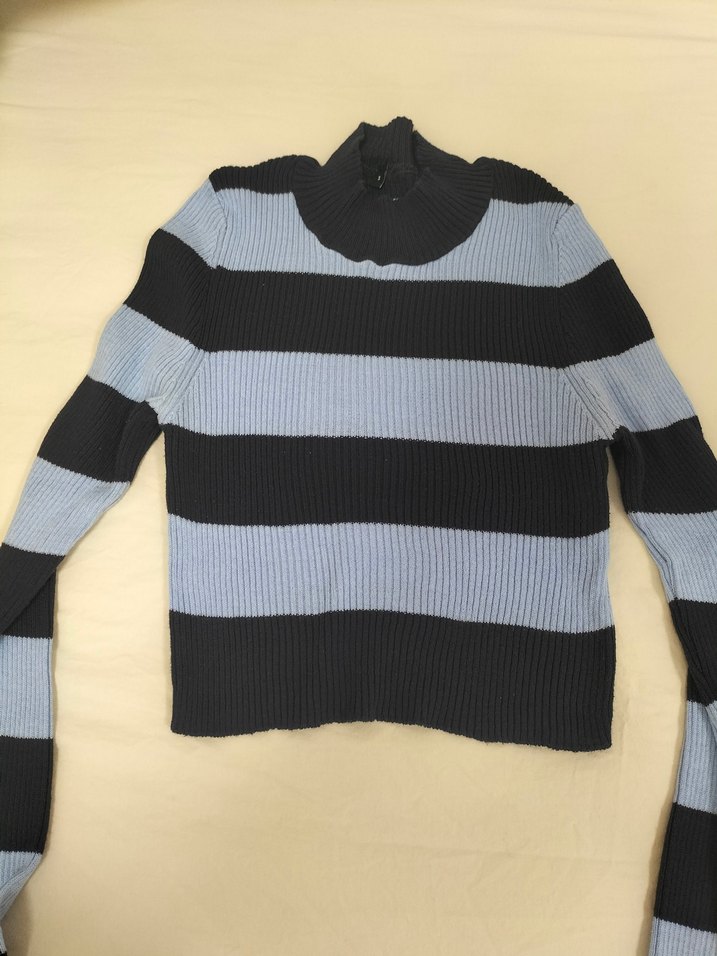 Çizgili Gri Kadın Crop Balıkçı Yaka Triko Kazak