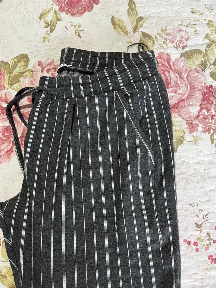 Çizgili Gri Piliseli Kadın Kumaş Pantolon