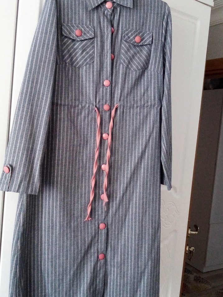 Çizgili simli tekstil kumaştan uzun ceket 38 40 bedene uyumlu hiç giyilmedi