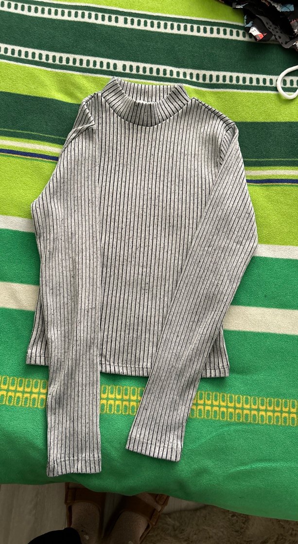 Çizgili Gri Yarım Balıkçı Yaka Triko Kazak
