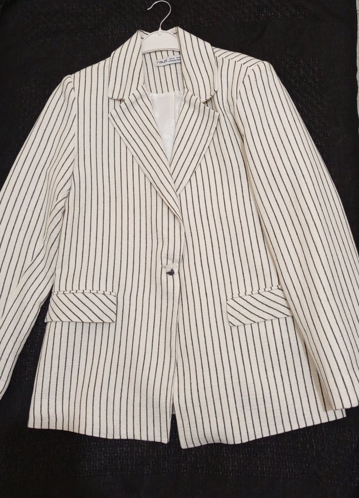 orjinal üründür hiç kullanılmamıştır Çizgili keten kadın blazer ceket