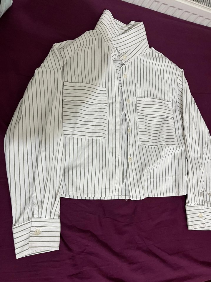 hiç giyilmedi uzun kollu, yakalı ve düğmeli Normal kesim, midi boy ve çizgili desenli xs ama L bedene kadar giyilebilir