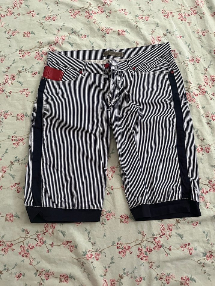 Koyu mavi çizgili pamuklu pantolon, normal boy ve düzenli kesim. Fermuarlı kapanış ile günlük rahat sokak stili için uygundur. Tam bir Italian billionaire kombini kırmızı rujla beyaz askılı ile çok güzel gider.