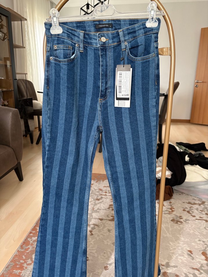 Çizgili Kadın Kot Pantolon