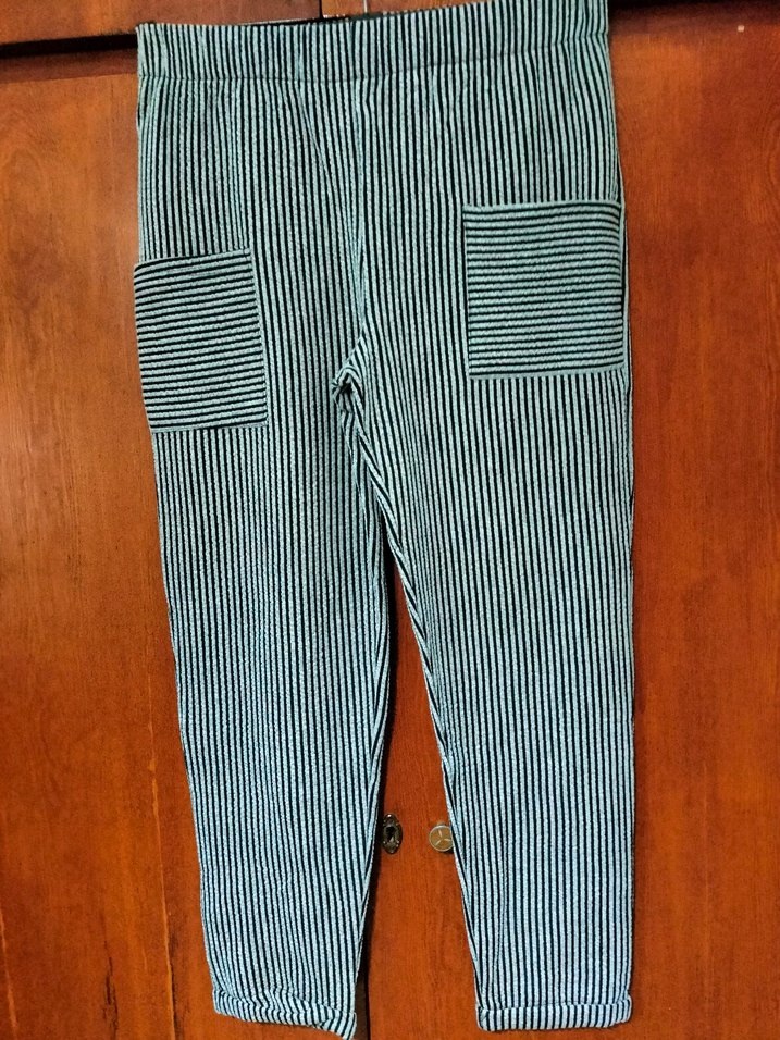 Çizgili desenli, ön cepli kadın kumaş pantolon. ve regular fit, sokak tarzı için uygun, günlük kullanıma ideal. Sentetik kumaştan, gri tonlarında.