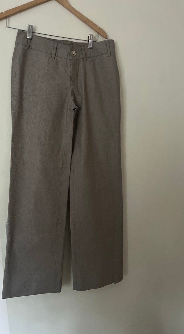 Boru kesim, çizgili, kumaş pantolon. İyi durumda, belinde arka tarafta yıpranma var, fotoğrafta görebilirsiniz. Boy: 1 metre, bacak genişliği: 24cm.