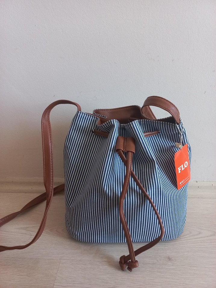 Çizgili kadın omuz çantası. Çapraz yada tek omuz kullanım için uygun. Ayarlayabilir askılı MissF marka 26,5×33 cm