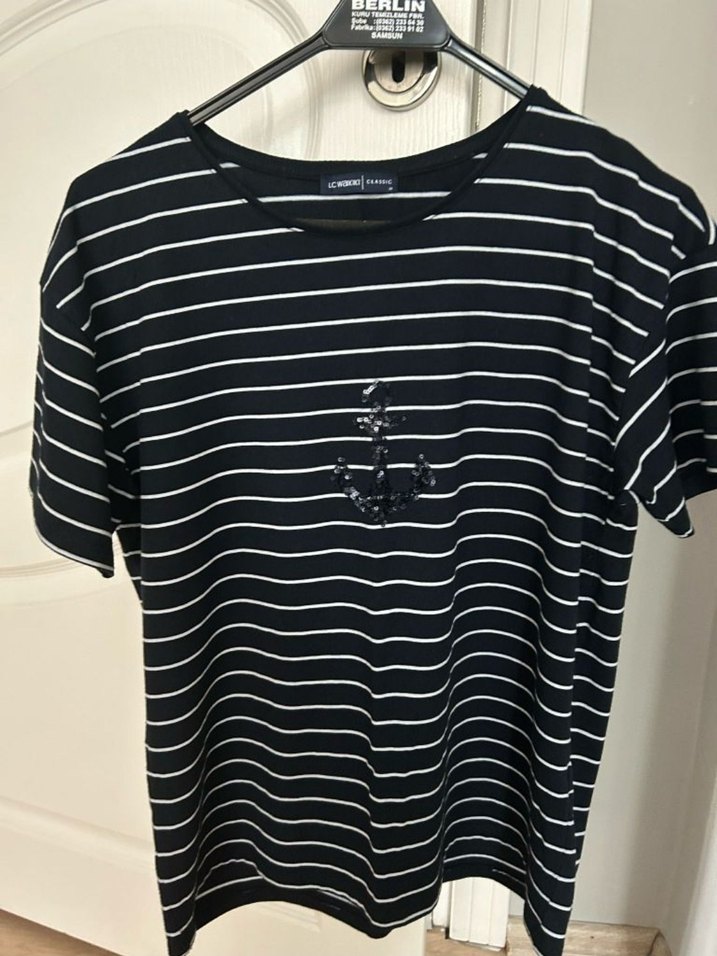 Çapalı lacivert beyaz çizgili tişört az kullanıldı