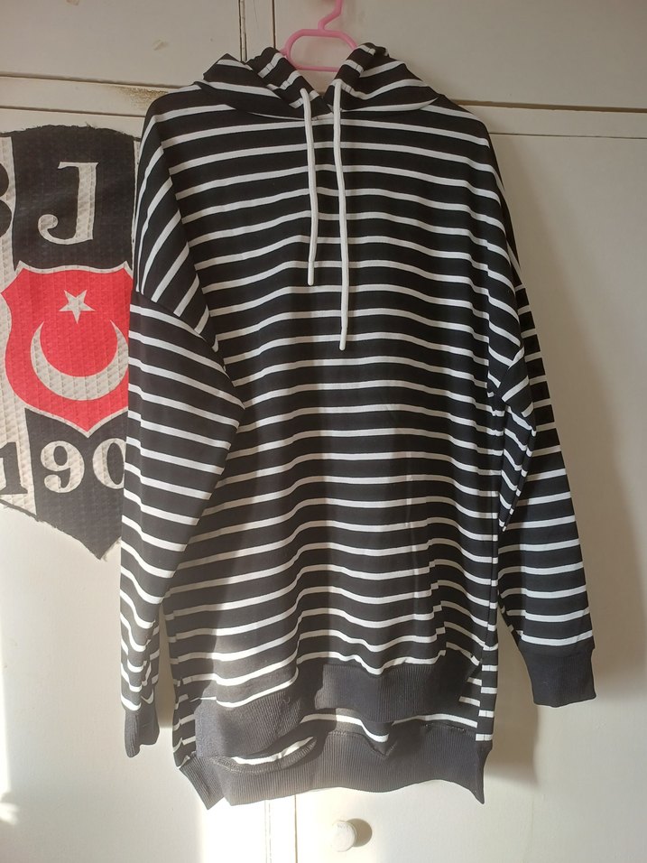 Uzun kollu, yüksek yakalı siyah çizgili sweatshirt. Rahat kesim ve yan yırtmaç detaylı, yumuşak kumaştan üretilmiştir. Günlük sokak tarzına uygundur. Hic kullanilmadim onun için satiyorum