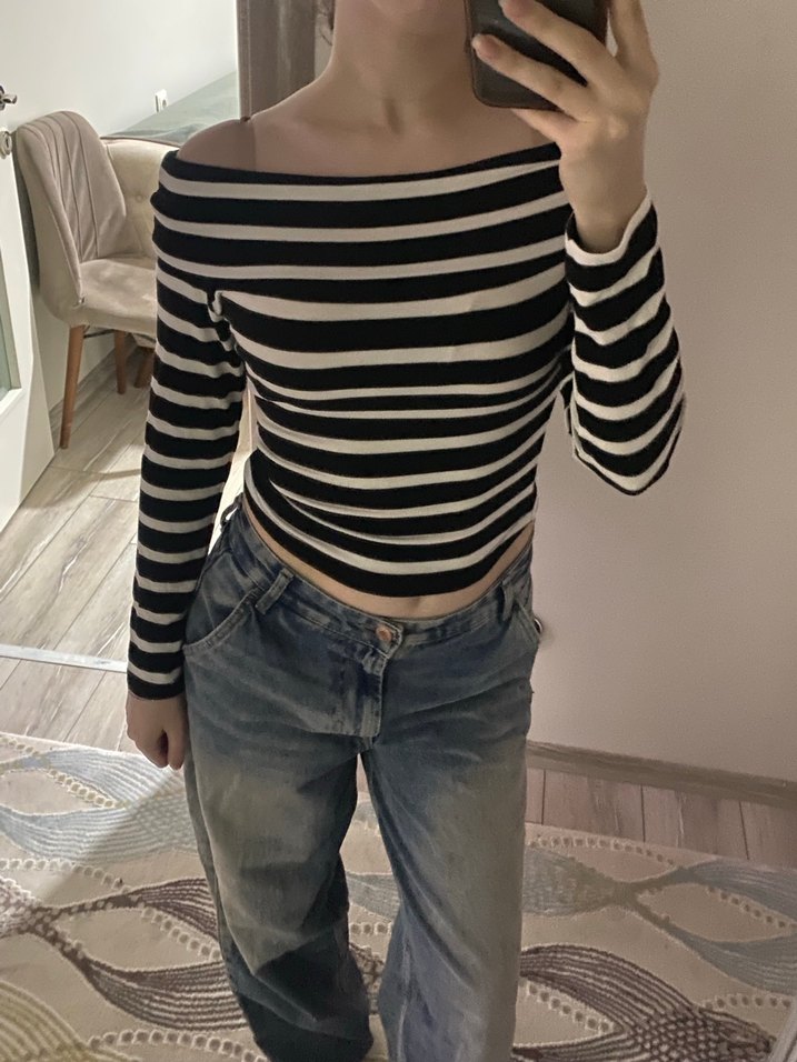 Çizgili kayık yaka Kadın Crop Top ve pantolon