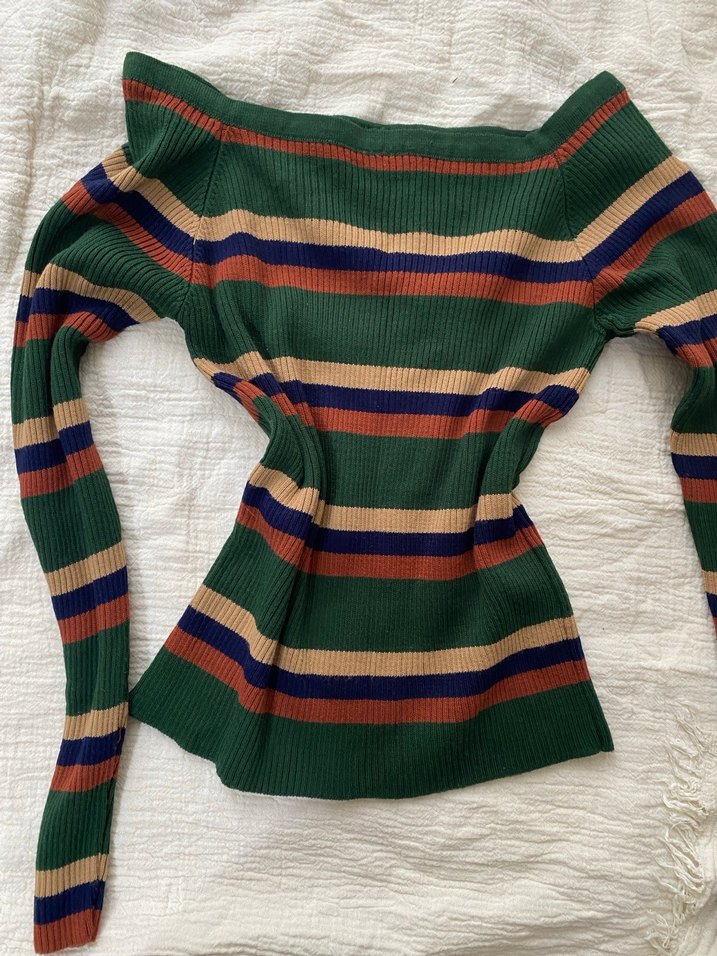 Çizgili, Kayık Yaka, Uzun Kollu Kadın Triko