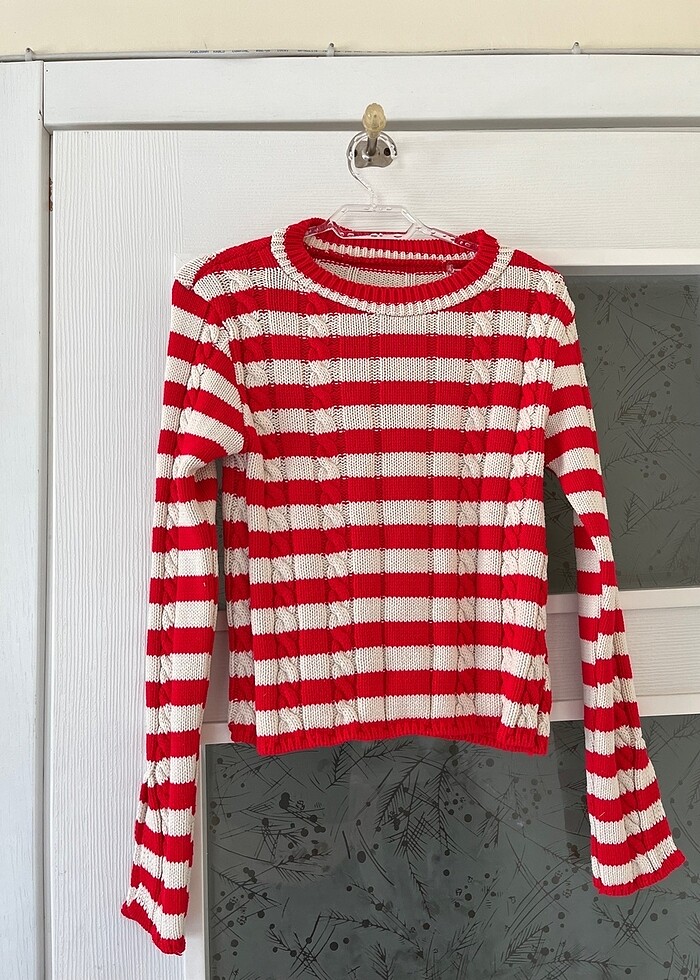 S beden ile uyumlu, çizgili kazak bir iki kere giyildi