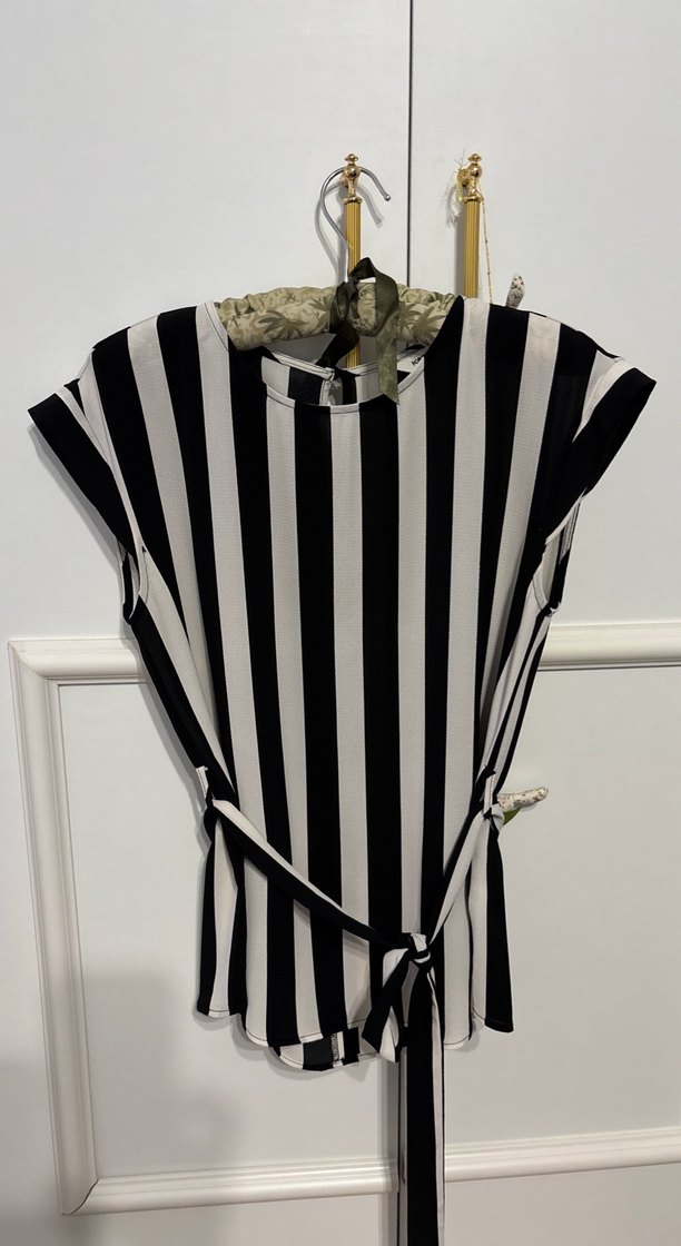 Çizgili, Kemerli Kadın Bluz