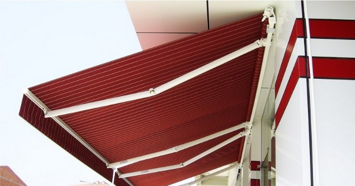 Parlak kırmızı, çizgili desenli modern tarzda tente mekâna şık bir görünüm kazandırır. 4 metreye 2 50 acilim