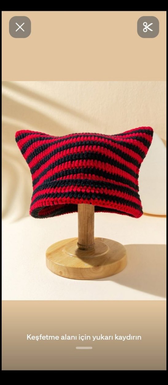 Çizgili Kırmızı Örgü Bere Şapka Çok Tarz