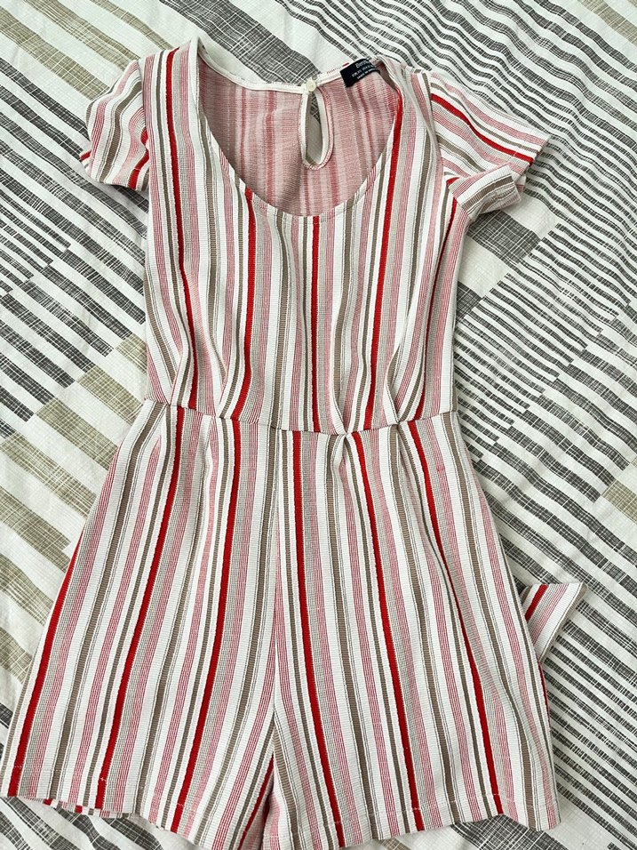 Bershka Çizgili Kısa Kollu Midi Tulum