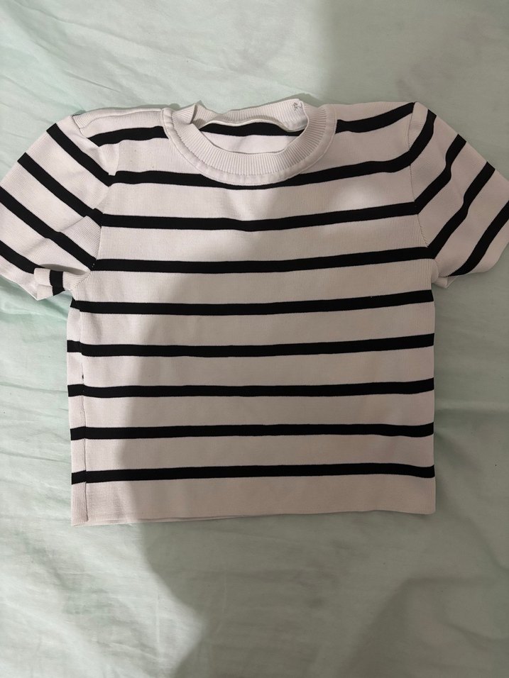 Pamuklu, çizgili ve kısa kollu bu kadın tişörtü, rahat ve şık bir günlük sokak stili sunar. Normal boy ve dar kesimlidir.
