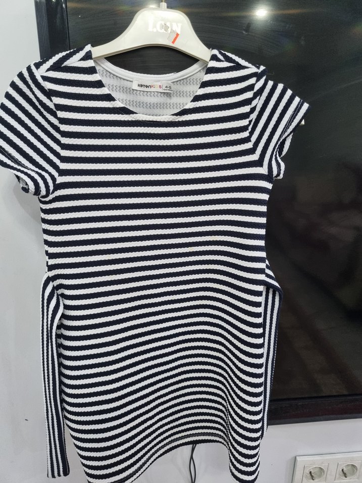 Çizgili Kısa Kollu Triko Çocuk Elbise