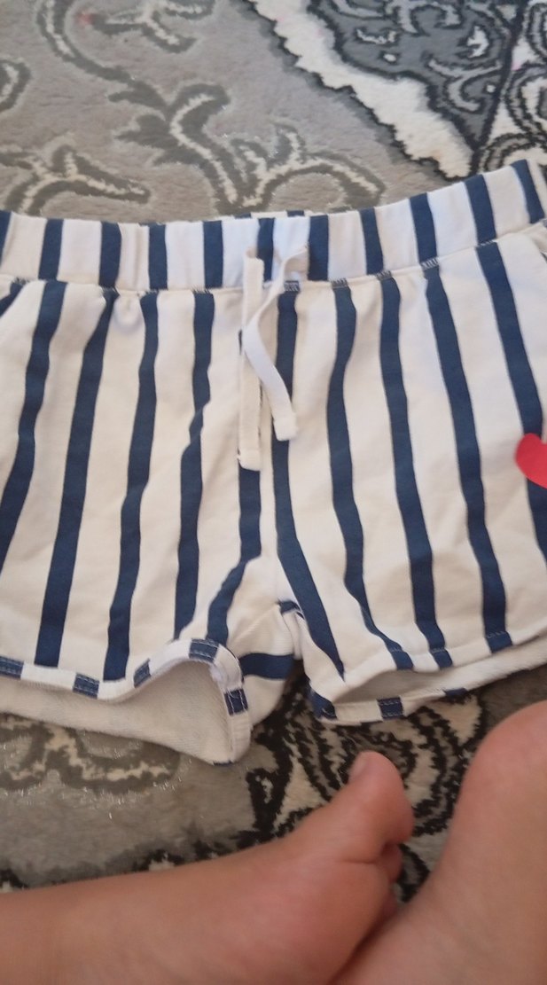 Mavi beyaz çizgili, ipli kisa kiz cocuk sort
