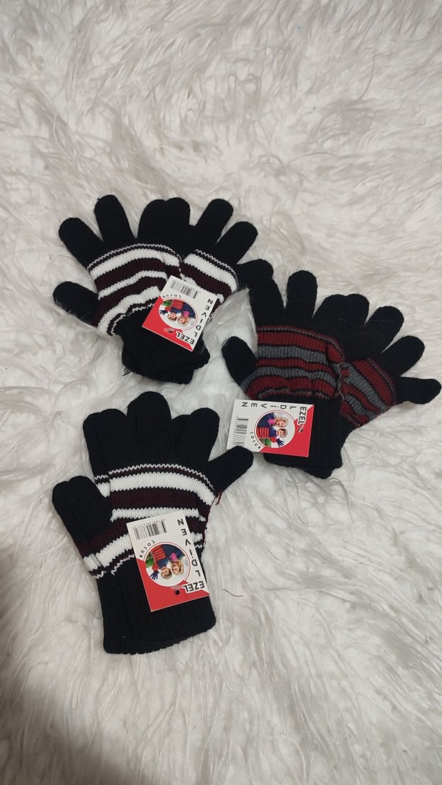 Çizgili Kız Erkek Eldivenleri, Renkli Örgü