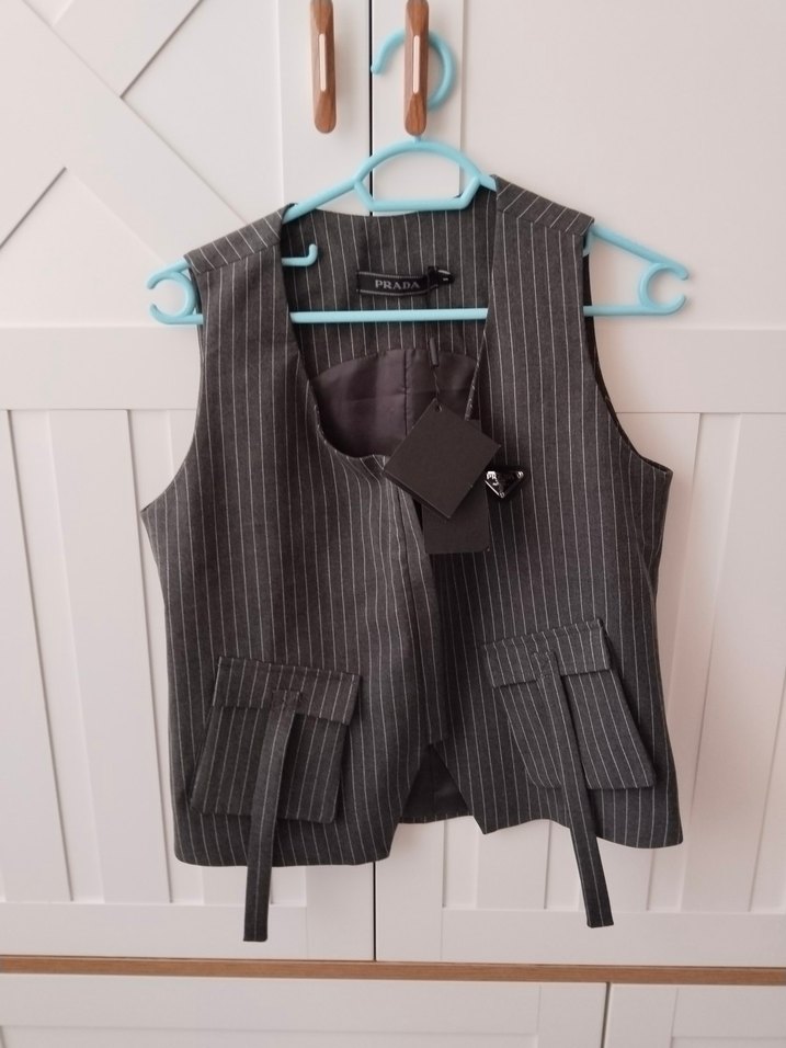 Çizgili Kolsuz Kadın Prada Yelek