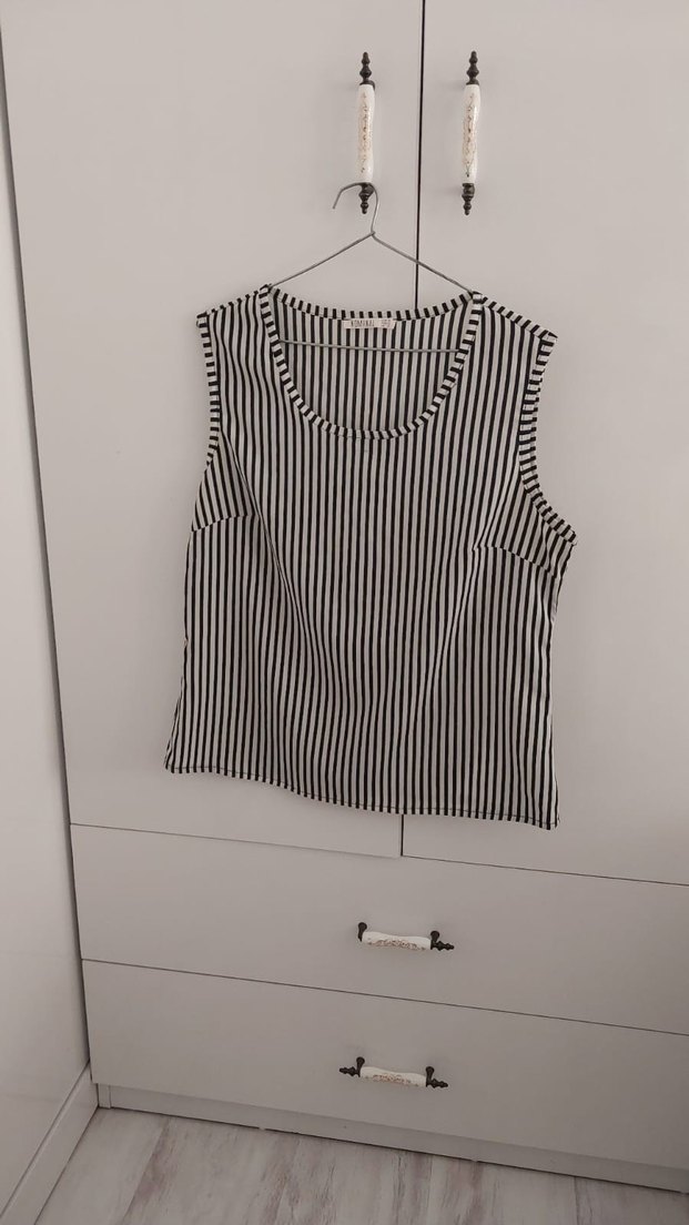 Çizgili, Kolsuz, Pliseli Kadın Bluz