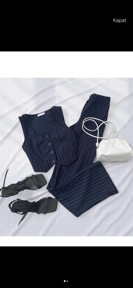 Çizgili Lacivert Midi Straplez Takım