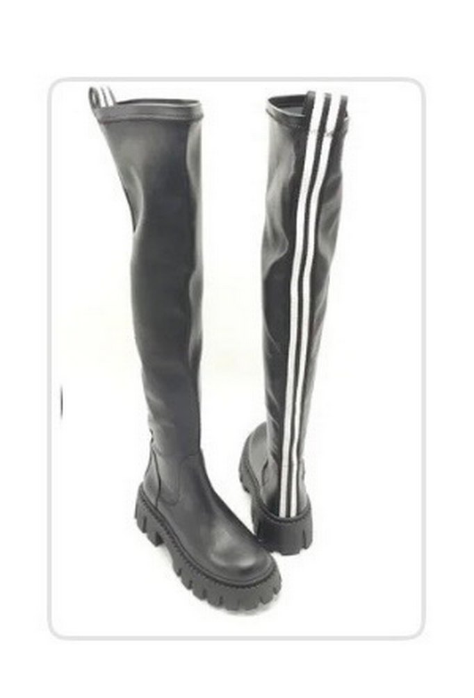 Çizgili Lastik Dizüstü Kadın Çizme