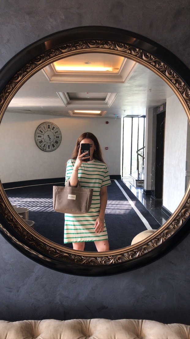 Çizgili Loose Fit Midi Elbise