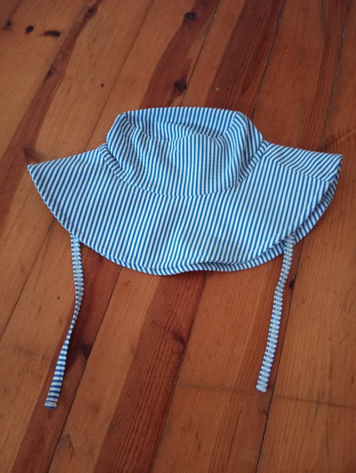 Çizgili Mavi Bebek sapkasi