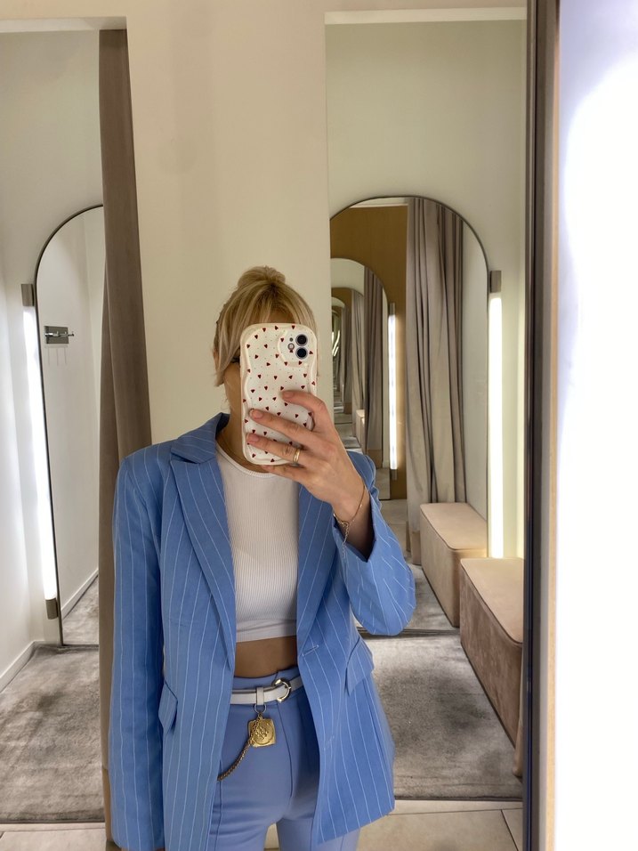 Çizgili Mavi Kadın Blazer Ceket