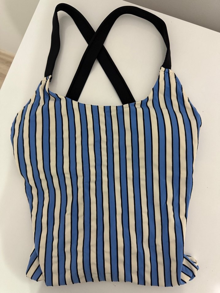 Kadınlar için mavi ve beyaz çizgili mayo sırtı açık 36 bedendir